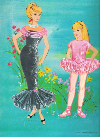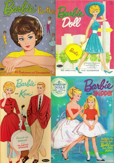 In the paper doll sets I browsed I found dozens of recognizable Barbie fashions. Here’s a sampling: