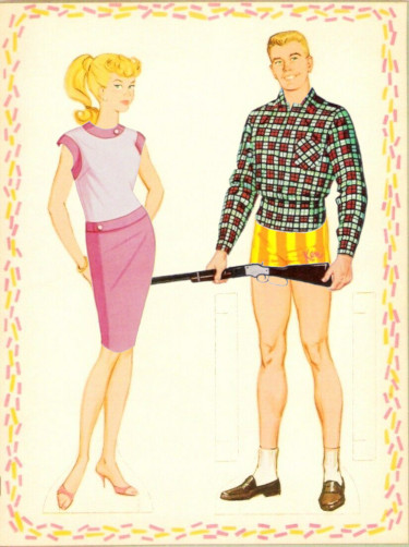 Fortunately for us, a wealth of the vintage paper dolls are still floating around sites like eBay, and a few enterprising individuals are even selling homemade reproductions of the 1960s originals. For this exploration I am focusing on the product of a single reproduction seller. I don’t know her and am not affiliated with her, but her extensive collection and high-quality images form a very convenient resource.