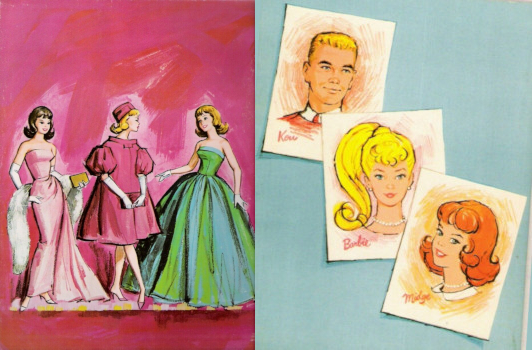 One of the deepest wells of vintage Barbie fashion sketches must be Whitman paper dolls–if you agree that they have a place alongside all the art that came straight from Mattel. Whitman had paper dolls on many subjects, from Kim Novak to Marlo Thomas to Twiggy and far beyond, and it’s perfectly possible that the Barbie sets share more DNA with those non-Mattel Whitman items than they do with non-Whitman, Mattel Barbie sketches. Whatever the case may be, I like the sets and think their aesthetic fits nicely alongside other Barbie illustrations.